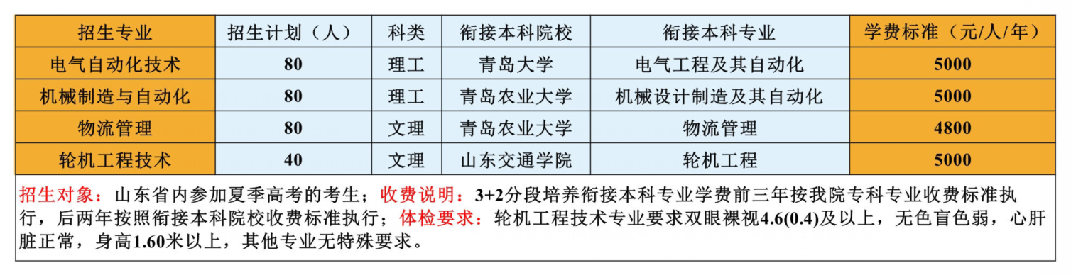 2、青岛港湾职业技术学院2017年3+2分段培养本科招生计划
